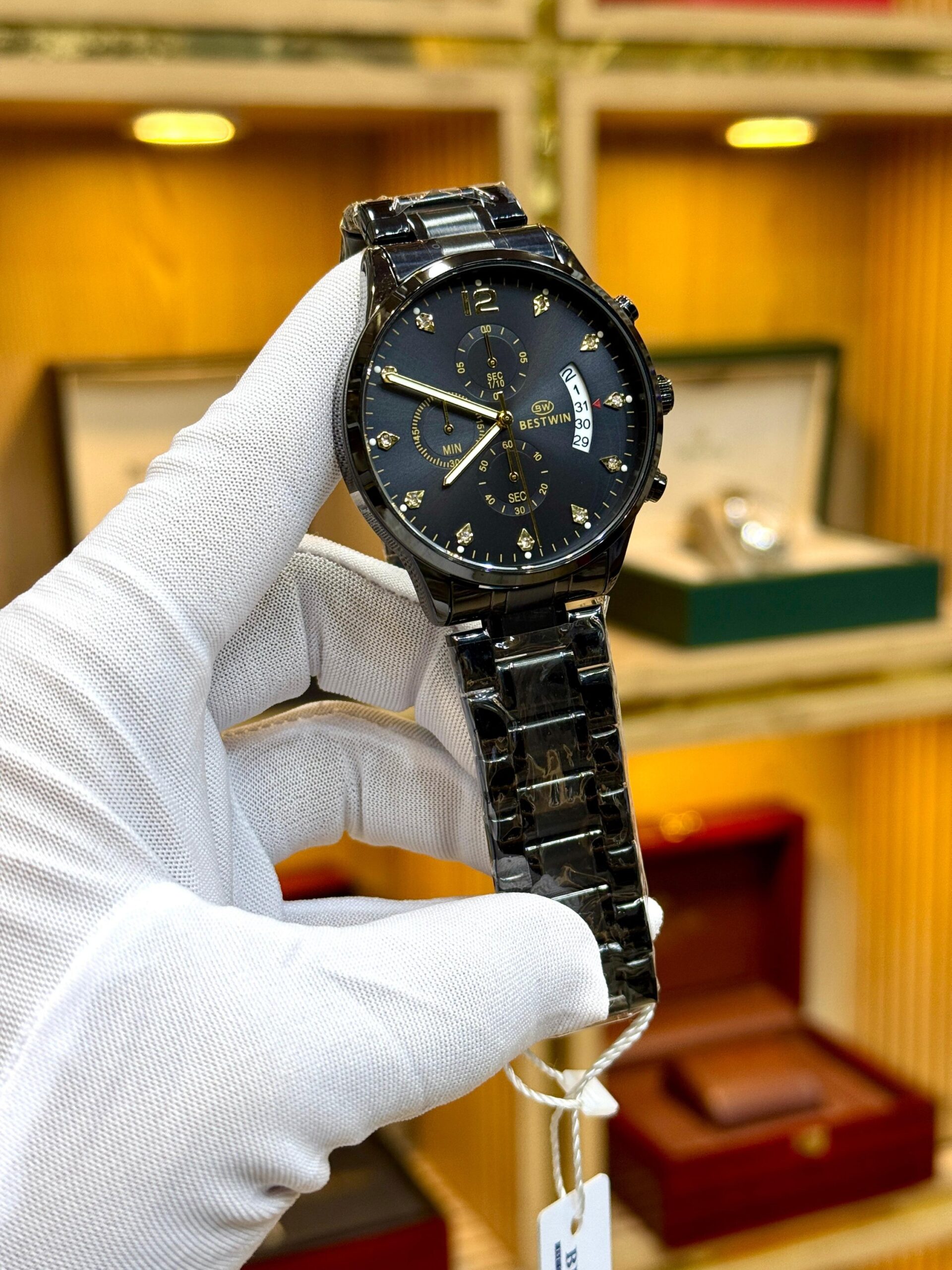Bestwin Chronograph ( Black Chain Black Golden Inner Dial )