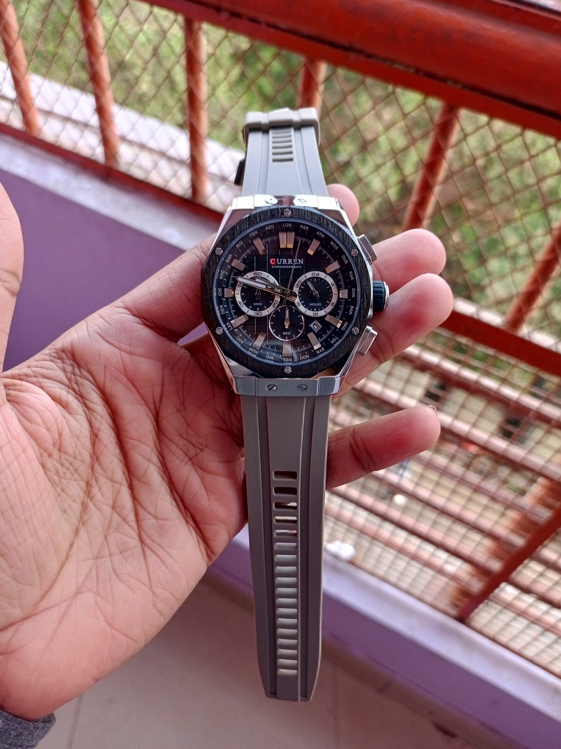 Be the first to review “Curren Chronograph ( Grey Strap Silver Black Dial )” Cancel reply