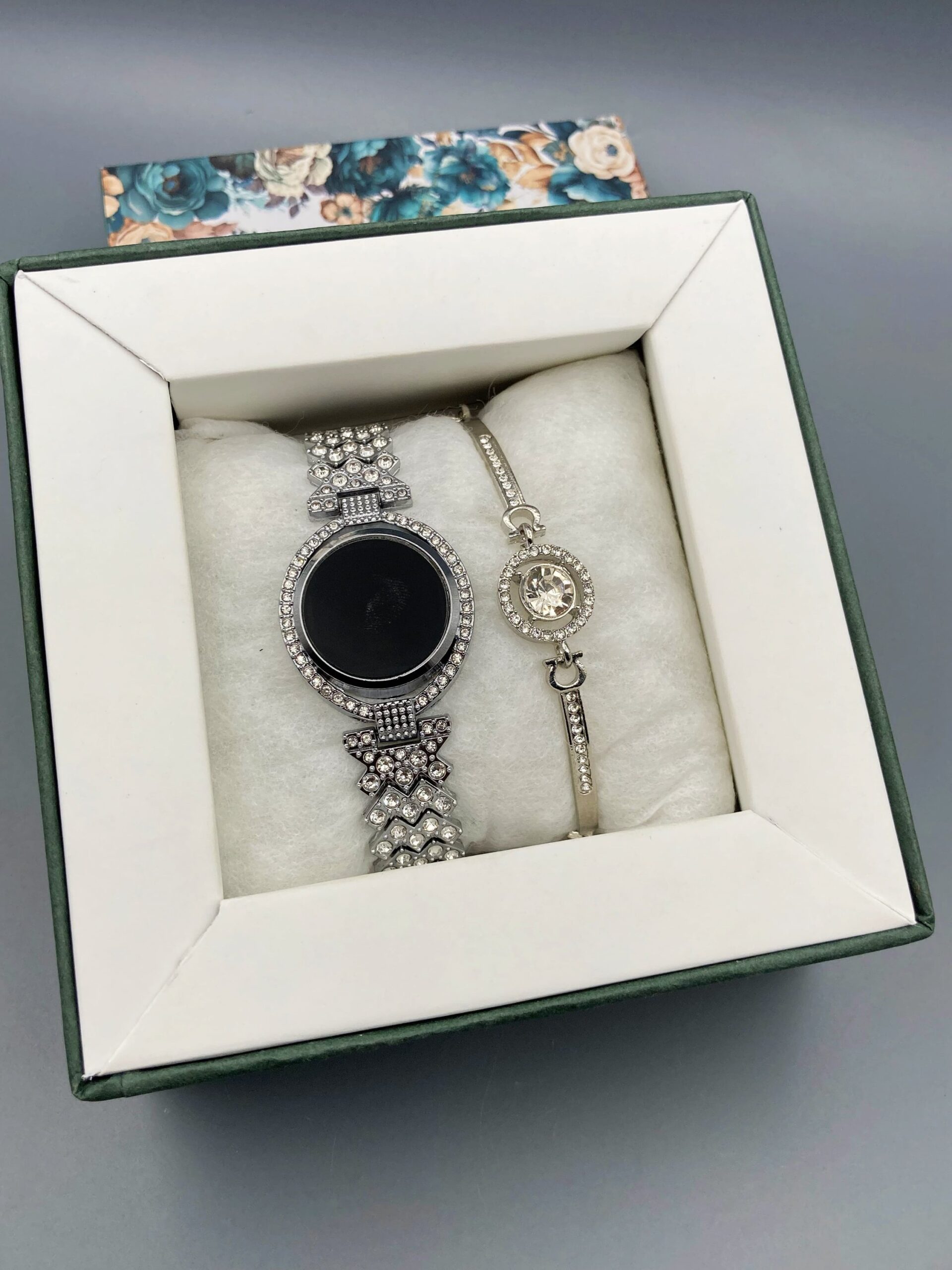 Premium Rhinestone Jewelry Set for Women – Touch Led Watch & Bracelet in Silver, Gold, or Rose Gold”